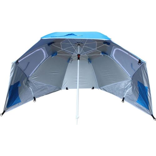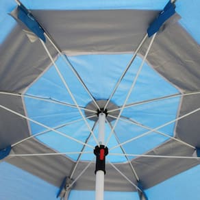 Guarda Sol/Paravento 2M Uv50 da marca Klimber. Este produto possui um diametro de 200 cm, peso bruto de 2,7 kg, altura de 205 cm e largura de 200 cm. O sistema de acionamento e manual e a forma e redonda. A cor e azul e o material e metal. Possui garantia de 3 meses e caracteristicas do tecido com UPF + 50. Perfeito para aproveitar um dia de sol na praia com protecao.