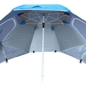 Guarda Sol/Paravento 2M Uv50 da marca Klimber. Este produto possui um diâmetro de 200 cm, peso bruto de 2,7 kg, altura de 205 cm e largura de 200 cm. O sistema de acionamento é manual e a forma é redonda. A cor é azul e o material é metal. Possui garantia de 3 meses e características do tecido com UPF + 50. Perfeito para aproveitar um dia de sol na praia com proteção. Marca: Brazil Home Living