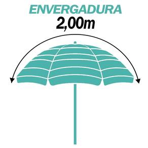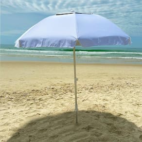Reforçado e com design diferenciado, chama atenção por sua elegância. Projetado com uma estrutura em alumínio reforçado e varetas em fibra de vidro que garantem resistência aos efeitos da corrosão. As 8 varetas em fibra de vidro com espessura de 5 mm garantem robustez ao produto. Possui saída de ar no topo que auxilia na estabilidade e sua haste em alumínio vem com sistema de fixação em espiral. Sua cobertura com fator de proteção solar UV 50+ é feita com tecido em poliéster com camada de silver coating. Acompanha bolsa de transporte. Prático, resistente, bonito e leve.
