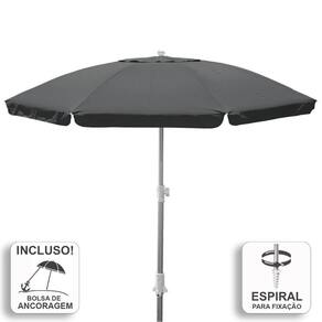 Acompanha Kit de Fixação/Ancoragem. Reforçado e com design diferenciado, chama atenção por sua elegância. Projetado com uma estrutura em alumínio reforçado e varetas em fibra de vidro que garantem resistência aos efeitos da corrosão. As 8 varetas em fibra de vidro com espessura de 7.9 mm garantem robustez ao produto. Possui saída de ar no topo que auxilia na estabilidade e sua haste em alumínio vem com sistema de fixação em espiral. Sua cobertura com fator de proteção solar UV 50+ é feita com tecido em poliéster com camada de silver coating. Acompanha bolsa de transporte. Prático, resistente, bonito e leve.