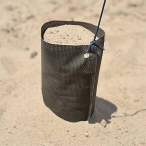 DICA: Colocar um pouco de água no entorno, após fixar a haste na areia, ajuda a reforçar a fixação.