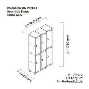 Armário Roupeiro de Aço totalmente montável, dispensa a utilização de parafusos, estrutura em chapas #24 e #26 (0,60mm e 0,45mm) conta com uma porta com estampos circulares em formação triangular para ventilação, sistema de fechamento de varão de 3 pontos, através de pitão para cadeado.