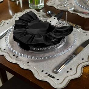 Contém: 2 Guardanapos Tamanho: 43 x 43 cm Cor: Preto Material: Tricoline Detalhes: Acabamento em babado Forma: Quadrado Estampa frente: Tricoline Liso Estampa verso: Tricoline Liso