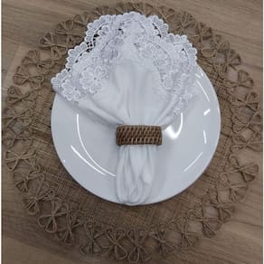 Guardanapo Com Renda Em Flores Branco 45x45cm Guardanapo Com Renda Em Flores Branco 45x45cm - Características Gerais do Produto: - Material: Tecido - Fabricante: Multi Trade Acompanha o produto: - 1 - Guardanapo Com Renda Em Flores Branco 45x45cm Garantia: - Sem Garantia