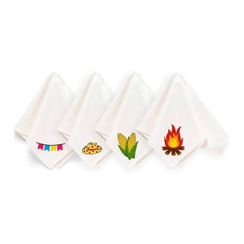 Guardanapo Copa E Cia 4 Peças Home 45x45cm São João Encantos Do Arraiá Guardanapo Copa e Cia 4 Peças Home 45X45cm São João Encantos do Arraiá - Características Gerais do Produto: - Composição: 100% Algodão. - Detalhes: Produto produzido no Brasil.; Design Exclusivo Copa&Cia.; As cores podem sofrer pequenas alterações de cor, variando de monitor para monitor.; Os objetos que ambientam as fotos não acompanham o produto.; As fotos produzidas são apenas como sugestão de uso com as demais peças da coleção. - Cuidados: Não Deixar de Molho.; Passar à ferro até 110C.; Lavar à temperatura normal máxima de 30C.; Não utilizar solventes, abrasivos ou alvejantes.; Não secar ao sol. - Dimensões (cm): Comprimento: 45 cm; Largura: 45 cm Acompanha o produto: - Kit com 4 Peças de Guardanapo de Tecido Garantia: - 7 dias/30 dias contra defeito de fabricação