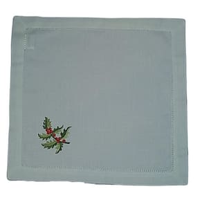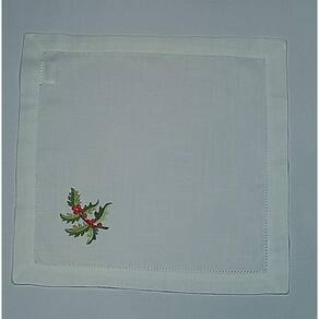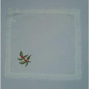 - 1 - Guardanapo De Linho Natal Branco Bordado Com Azevinho 45x45 Cm