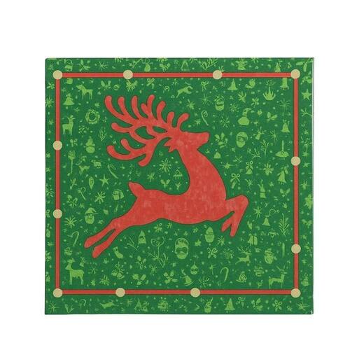 Guardanapo de Natal Estampado Verde e Vermelho Rena 33x33cm Folha Dupla Pacote 20 Unidades