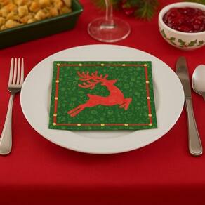 Leve praticidade e um toque festivo à sua mesa posta com o guardanapo de papel natalino estampado nas cores verde e vermelho, com desenho de rena. Um item indispensável para completar a decoração de ceias, almoços, jantares e confraternizações com muito estilo e charme.