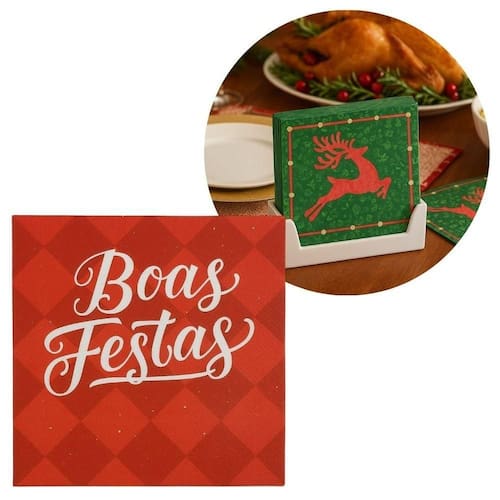 Guardanapo de Natal Estampado Vermelho Boas Festas 20 Unidades