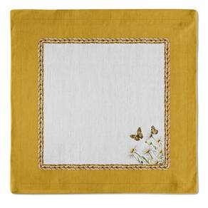 Contém: 2 Guardanapo 2 Anéis De Orelhinha Cor: Mostarda e Branco Tamanho: 43 x 43 cm Material: Linho Produto: Nacional