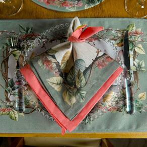 Contém: 2 Guardanapo 2 Anéis De Orelhinha Cor: Verde e Branco Tamanho: 43 x 43 cm Material: Linho Produto: Nacional