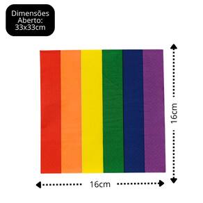 Produzido em papel tradicional com folhas duplas, oferece excelente absorção e praticidade. Sua estampa de arco-íris com 6 cores é perfeita para dar um toque festivo à mesa posta, combinando com diferentes estilos de decoração.