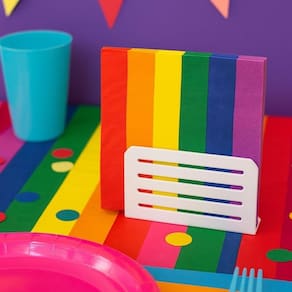 Produzido em papel tradicional com folhas duplas, oferece excelente absorção e praticidade. Sua estampa de arco-íris com 6 cores é perfeita para dar um toque festivo à mesa posta, combinando com diferentes estilos de decoração.