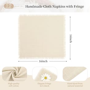 Pacote com 12 guardanapos de linho, guardanapos laváveis à mão com franja 40,6 x 40,6 cm Guardanapos de pano a granel, combinados com o local bem equipado, adicionando um visual rústico e vintage à sua mesa de jantar. guardanapos de linho apresentam um design delicado de borla, podem melhorar muito bem a experiência do hóspede, tornando a refeição mais agradável. Especificações do produto: Quantidade do pacote: conjunto de 12 guardanapos de linho Cor: linho natural Dimensões: toalhas de guardanapo de mesa de 40,6 x 40,6 cm Material: algodão Características do pano de guardanapo de mesa. 1. Você receberá 12 guardanapos de pano de linho, você pode simplesmente dobrá-lo para baixo e colocá-lo em um prato, ou simplesmente amarrá-lo com barbante e escolher as flores para decorar sua mesa de jantar. 2. Fibra natural, feita à mão, tingida à mão de material natural, não desbota facilmente, inodoro, boa escolha para todos os tipos de grandes eventos, como guardanapos de hotel 3. Os guardanapos de linho apresentam um design delicado de franjas, as bordas dos quatro lados são cuidadosamente puxadas à mão para uma elegante franja de 1,3 cm, não é fácil de quebrar e dar nó. 4. O design exclusivo de franjas torna sua mesa de jantar mais rústica e vintage, mostrando uma atmosfera chique e elegante. guardanapos reutilizáveis laváveis combinam facilmente com a mesa de jantar, adequados para Recepção de casamento, festa, chá de panela, chá de bebê, festa de aniversário, cerimônia, festival e outros eventos especiais Jantar diário, café buffet, piquenique, terraços ao ar livre, churrasqueiras, hotel e outras ocasiões. Dicas: Guardanapos laváveis em pano, lavagem à máquina a frio, ciclo delicado Permanecerá em boa forma após a lavagem. Reutilizável e não desbota facilmente. - Pacote de guardanapos de pano: você receberá guardanapos de pano feitos à mão com 12 franjas, cada peça tem 40,6 cm x 40,6 cm. Guardanapos de linho de algodão, cor como linho natural, combinam bem com o local bem equipado, adicionando um visual rústico e vintage à sua mesa de jantar. - Material premium: algodão, fibra natural, feito à mão, mais macio, com boa absorção de umidade e resistência ao calor. Tingido à mão de material natural, não desbota facilmente, inodoro, boa escolha para todos os tipos de grandes eventos, como guardanapos de hotel. guardanapos laváveis podem adicionar uma atmosfera mais romântica à sua mesa de jantar. - Características dos guardanapos: Os guardanapos com franjas feitos à mão apresentam um design delicado de borla, as bordas em todos os quatro lados são cuidadosamente puxadas à mão para uma elegante franja de 1,3 cm, não é fácil de quebrar e amarrar. Prático com elegância adicional, o pano de guardanapo de mesa sempre pode melhorar muito bem a experiência do hóspede, tornando a refeição mais agradável. - Ocasiões aplicáveis: guardanapos de pano combinam facilmente com a mesa de jantar, adequados para recepção de casamento, festa, chá de panela, chá de bebê, festa de aniversário, cerimônia, festival e outros eventos especiais, também para refeições diárias, buffet de café, festa, piquenique, terraços ao ar livre, jantar, churrascos, hotel e outras ocasiões. - Fácil de cuidar: lavar à máquina a frio, ciclo delicado. Os guardanapos com franjas feitos à mão permanecerão em boa forma após a lavagem, reutilizáveis e não desbotam facilmente. Guardanapos de jantar de linho, você pode simplesmente dobrá-lo para baixo e colocá-lo em um prato, ou simplesmente amarrá-lo com barbante e escolher as flores para decorar. Estamos comprometidos em fornecer a você guardanapos elegantes e funcionais, e sempre seremos responsáveis pela qualidade.