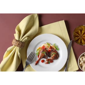 - Guardanapo de jantar 100% algodão feito com lindos orifícios decorativos costurados na bainha na ourela.