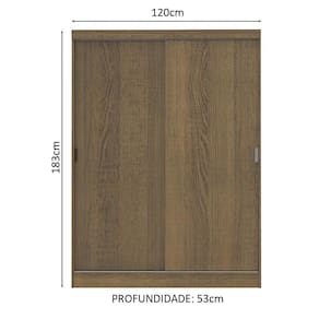As medidas finais do roupeiro são: 183 cm de altura x 120 cm de largura x 53 cm de profundidade.