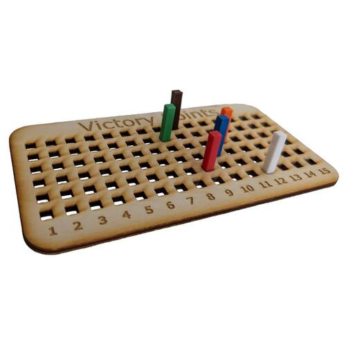 O Victory Points Score Keeper/Tracker é compatível com o jogo de tabuleiro Settlers of Catan e oferece uma maneira fácil e elegante de acompanhar a pontuação de cada jogador. - Uso: Compatível com o jogo de tabuleiro Settlers of Catan (jogo base, Cities & Knights, Seafarers, etc.) - Expansível: suporta até 6 jogadores e até 15 pontos de vitória. - Design versátil: o tamanho compacto do tabuleiro de jogo (aproximadamente 6,75" L x 3,75" W x 1/8" H polegadas) permite fácil portabilidade e armazenamento. - Artesanato: rastreador feito de madeira natural de alta qualidade (bétula); os marcadores de pontos são impressos em 3D com PLA. - Pequenas empresas: este Settlers Victory Points Score Keeper/Tracker é feito por uma dupla de pai e filha que adora jogar jogos de tabuleiro e criar acessórios para complementar os jogos que jogamos.