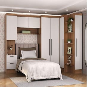 Um excelente produto para seu dormitório, que possibilita um aproveitamento inteligente do espaço disponível em sua casa, sem deixar de agregar beleza, modernidade, praticidade e conforto em seu dia a dia. Altura do Conjunto: 204.5 cm Ambiente: null Ambiente Principal: Quarto Cor: Nogal/Branco Informação Complementar: 1x Módulo Aéreo 2 Portas Viena Nogal/BrancoLargura: 90 cmAltura: 68Peso: 19.5Profundidade: 30 cmNecessita Montagem: Sim1x Módulo Mesa de Cabeceira Alta 1 Porta 2 Gavetas Nogal/BrancoLargura: 35,5 cmAltura: 204,5 cmPeso: 39 kgProfundidade: 45 cmNecessita Montagem: Sim1x Módulo de Canto Reto 1 Porta Viena Nogal/BrancoLargura: 85Altura: 204.5Peso: 54.5Profundidade: 46.5Necessita Montagem: Sim1x Módulo Roupeiro 2 Portas 2 Gavetas Internas Viena Nogal/BrancoLargura: 71Altura: 204.5Peso: 54.5Profundidade: 49 cmNecessita Montagem: Sim1x Módulo Armário 1 Porta com Prateleira Externa Viena Nogal/BrancoLargura: 42 cmAltura: 204.5Peso: 37.5Profundidade: 46,5 cmNecessita Montagem: Sim Material Principal: MDP