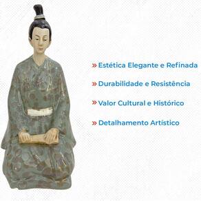 Dicas de utilização: coloque a peça em uma prateleira, estante ou mesa de centro. A postura do guerreiro ajoelhado e o detalhe do rolo de papel podem agregar um toque de reflexão e elegância ao ambiente.