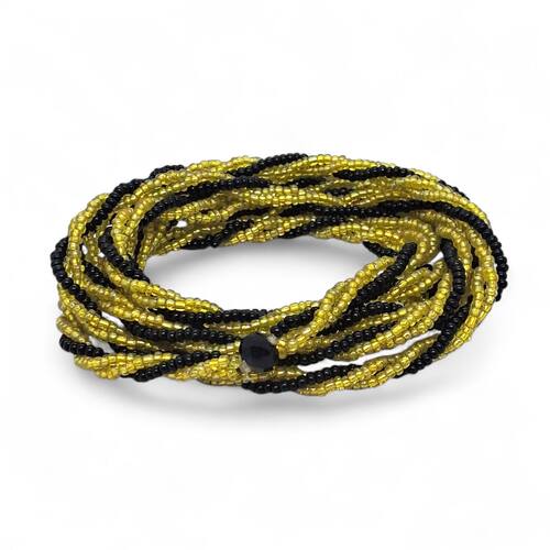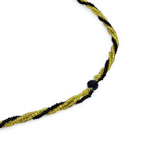 Guia 3 Fios Trançado Cristal Dourado e Preto Proteção 60 cm
