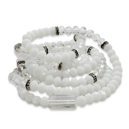Guia Branca e Cristal Oxalá Detalhes Prata 60 cm Umbanda