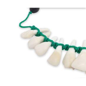 Linda Guia de dentes para caboclo ou para presente. Guia de dentes para cabloco com 17 dentes, dentes: (Cão os pequenos nas extremidades, e Cavalo os maiores) Cordão de Algodão na cor verde, área com os dentes mede perto de 22 cm Fecho com olho de boi Peso aproximado de 80 g