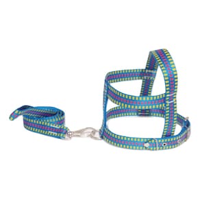 Peitoral de nylon 25 mm quadriculado azul com fivela de metal; Guia de nylon 25 mm azul quadriculado; Mosquetão com trava de segurança; Cor azul. Tamanho: nº 4. Praticidade, conforme para seu pet de pequeno a médio porte. Passei com estilo e elegância. Medidas aproximadas: Pescoço 44 cm Tórax 46 à 51 cm. Guia 90 cm. Marca: Nica pet Ean: 7434809331868