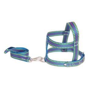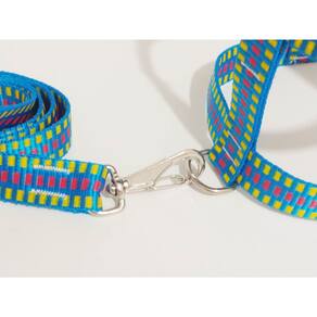 Peitoral de nylon 25 mm azul quadriculado com fivela de metal; Guia de nylon 25 mm azul quadriculado; Mosquetão com trava de segurança; Cor azul quadriculado. Tamanho: nº 6. Praticidade, conforme para seu pet de pequeno a médio porte. Passei com estilo e elegância. Medidas aproximadas: Pescoço 48 cm. Tórax 49 à 63 cm. Guia 90 cm. Marca: Não Informado