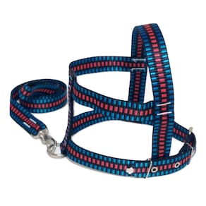 Peitoral de nylon 25 mm quadriculado preto com fivela de metal; Guia de nylon 25 mm preto quadriculado; Mosquetão com trava de segurança; Cor azul. Tamanho: nº 4. Praticidade, conforme para seu pet de pequeno a médio porte. Passei com estilo e elegância. Medidas aproximadas: Pescoço 44 cm Tórax 46 à 51 cm. Guia 90 cm. Marca: Nica pet