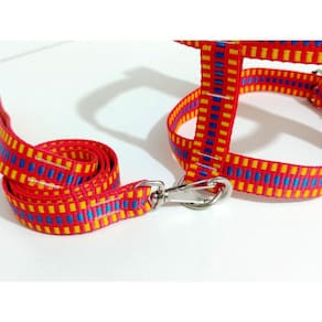Peitoral de nylon 25 mm quadriculado vermelho com fivela de metal; Guia de nylon 25 mm vermelho quadriculado; Mosquetão com trava de segurança; Cor azul. Tamanho: nº 4. Praticidade, conforme para seu pet de pequeno a médio porte. Passei com estilo e elegância. Medidas aproximadas: Pescoço 44 cm Tórax 46 à 51 cm. Guia 90 cm. Marca: Nica pet Ean: 7434868206213