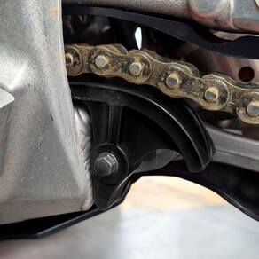 Funciona orientando a corrente em seu deslocamento, garantindo que ela permaneça alinhada e reduza o risco de se desgastar ou estragar outras partes importantes da moto.
