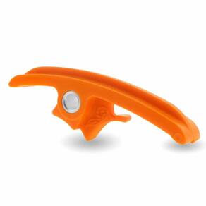 Funciona orientando a corrente à medida que ela sai do pinhão, garantindo que ela permaneça alinhada e reduza o risco de escape ou desgaste prematuro.