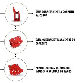 Ideal para a prática da trilha, motocross, enduro, velocross entre outras modalidades off-road, este guia garante que você possa desafiar seus limites sem preocupações com correntes escapando ou barulhos que distraem sua concentração durante a pilotagem.