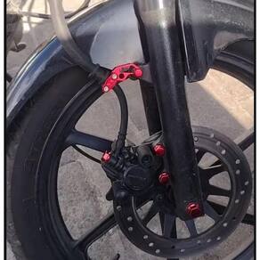Guia Da Mangueira Vermelho De Freio Aluminio Anodizado Características e benefícios: - Construído em alumínio de alta qualidade, garantindo durabilidade e resistência. - O suporte versátil protege as linhas de freio da motocicleta. Muitos motociclistas costumam usar abraçadeiras para amarrar as linhas de freio ao quadro para fixação rápida e fácil, mas não só este método, a longo prazo, é insustentável, mas também afeta a capacidade de movimento da rotação no guidão. Com a montagem versátil e suas características multidirecionais, não afeta a amplitude de movimento das linhas de freio e também oferece proteção.