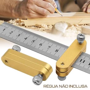 Guia Gauge de Marcação Graminho para Régua em Alumínio Dremax - Marca: Dremax - Referência: JIG001 - Material: Alumínio - Dimensões: 52 x 12,3 x 14mm - Peso bruto: 30 gramas - Transforme a sua régua em um graminho - Não acompanha régua - Garante posicionamento preciso de sua régua, tornando mais fácil de medir e marcar com precisão. - Facilita a marcação e a medição de ângulos em seus projetos, economizando tempo e esforço - Perfeito para projetos em madeira, tornando-se uma adição versátil para qualquer caixa de ferramentas - Indicado para juntas de superfície, em T e em L, adequado para conexão rápida DIY de móveis e marcenaria, etc. - : 90 dias contra defeitos de fabricação Marca: Não Informado