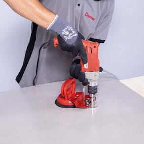 Feito para proporcionar segurança e minimizar os prejuízos nas perfurações de peças de mármores, granitos, porcelanatos, pisos e revestimentos em geral, porque é um dispositivo que evita que a serra copo ou broca faça algum movimento lateral e danifique a peça a ser perfurada evitando assim, prejuízos operacionais e financeiros no processo de perfuração.