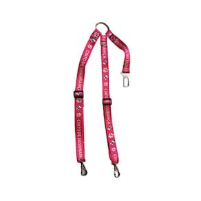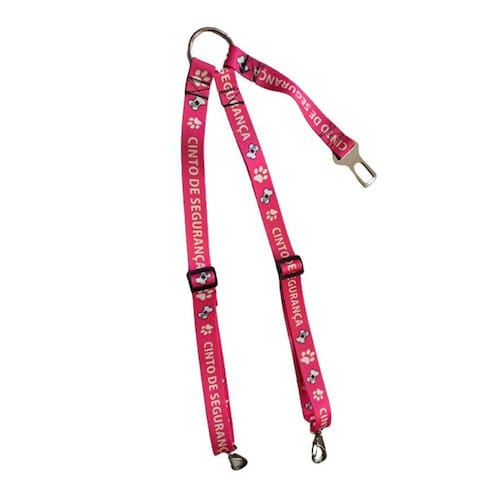 Guia dupla para cinto de segurança - feito em tira de seda estampada de 25mm - acabamentos em costura reforçada - ferragens niqueladas - regulável de 45 a 75 cm Nossas peças são feitas com ferragens niqueladas e soldadas, além disso não usamos rebites no acabamento das peças para evitar ferrugem e que se soltem, levando um risco para o cão. Ean: 7898662316903