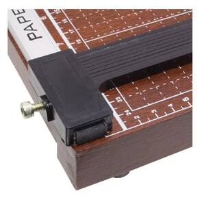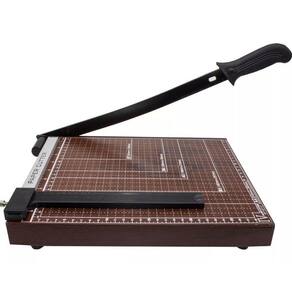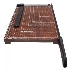 - trava de segurança lateral e cabo com punho em plástico - fixador de papel ajustável - pés emborrachados para maior estabilidade e segurança durante o corte - ideal para trabalhos escolares, escritórios e papelarias