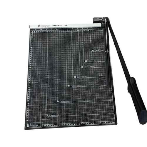 Guilhotina com prensa de papel a3 da procalc é a escolha ideal. Base de aço e na cor preta.