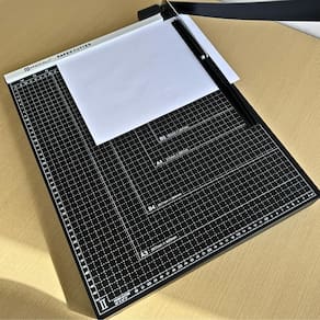 Tamanho a3 com marcação versátil a guilhotina é ideal para papéis no tamanho a3 e possui marcações auxiliares em diversos formatos a3, a4, b4, a5, b5, b6 e b7 ,