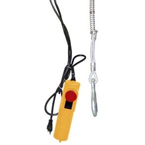 Possui redutor com carcaça de alumínio, proteção (estrutura) em chapa de aço reforçado, botoeira pendente com chave de emergência e fim de curso para desligamento automático.