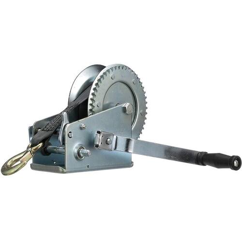 Guincho manual com sistema de catracas. Utilizado em "caretinhas" para subida/decida de embarcações como: lancha, barco de alumínio, jet, etc. Guincho para carreta, fabricado em aço galvanizado, com cinta de poliester de alta resistência. Este guincho possui componentes premium que oferecem desempenho confiável para longo prazo. Este guincho de reboque apresenta construção em aço zincado, engrenagem sólida de 1 peça e é pré-perfurado para fácil instalação de 3 parafusos em seu reboque. Ele fornece movimentação via catraca. Produto utilizado para içamento de peças, construção de girafas e macacos. Melhor custo beneficio, adapta em todos os modelos de carretinha.