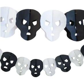Contém: 01 Guirlanda de Halloween de Papel em Formato de Caveira com 3 Metros