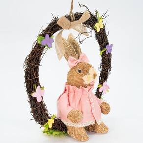 Guirlanda Coelha De Páscoa Em Palha Decoração Enfeite 28cm Guirlanda Coelha de Páscoa em Palha Decoração Enfeite 28cm - Deixe sua casa para a páscoa mais decorada com esta linda Guirlanda de Coelhinha.