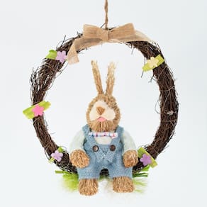 Guirlanda Coelho de Páscoa Enfeite Decorativo em Palha 28cm -