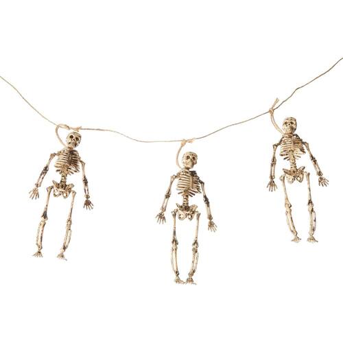 Esta guirlanda de esqueleto assustadora fará sua casa parecer ainda mais assustadora. Mede 182,88 cm de comprimento. Os esqueletos de 15 cm são suspensos em uma guirlanda de corda.