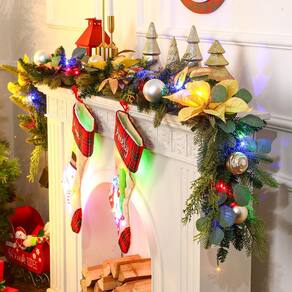 Alupssuc Guirlanda de Natal de 1,8 m com luzes, luzes multicoloridas operadas por bateria com temporizador, decorada com bolas de Natal e flores para manto de escadas, corrimão interna e externa, dourada - ?Linda decoração?: Acabamento com pinhas de pinheiro, bolas de ouro, frutas douradas e flores douradas, feito de PVC retardador de chamas e PE, resistente ao fogo e hipoalergênico. - ?Interior ou exterior?: para exibição interna ou externa coberta, como o corrimão da escada, a lareira ou até mesmo em molduras de portas e janelas ou locais cobertos ao ar livre. - ?Multicolorido?: luzes LED multicoloridas alimentadas por 29 baterias pré-conectadas, mesmo se uma lâmpada se apagar, as outras ainda podem acender, 8 tipos de mudanças de cor da luz, 4 tipos de luzes de cores quentes e 4 tipos de luzes coloridas com modos controláveis de piscar, respirar e luz constante. - ?Controlador de tempo?: temporizador integrado de 6 horas on/18 horas (requer 3 pilhas AA, não incluídas). - ?Natural realista?: mede 1,8 m. O garl artificial de Natal parece realista pode se tornar o melhor suporte para decoração de Natal em sua casa.