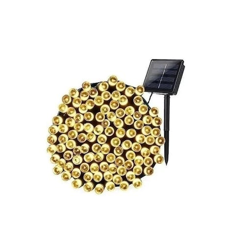 Solar Lights Christmas Garland de 10 metros e 100 LED Características: -Painel solar 2V 100MA.-Bateria de 1,2V 600 mAh. -Carga total da bateria entre 6-8 horas. -É um produto ecológico. -Pode ser em casamentos, jardins, praças, festas, eventos. -Eles desligam e ligam automaticamente, graças ao sensor de luz. -Eles são tão brilhantes quanto os LEDs que se conectam à rede elétrica. -Eles são simples e rápidos de instalar. -São autossuficientes e não precisam de eletricidade, portanto podem ser instalados em qualquer lugar. -Função: ignição intermitente ou fixa.