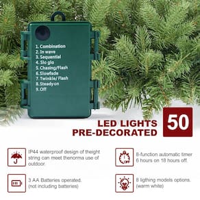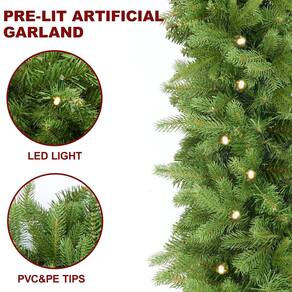 Guirlanda de Natal artificial pré-iluminada com 50 lâmpadas de LED, verde, decorada com pinhas, bola dourada em pó com glitter, operada a pilhas, manto para decoração de casa, escadas, lareiras, parede - A guirlanda de Natal artificial tem 2,7 m de comprimento com 30,5 cm de largura, material PE misto PE. Perfeita para grades, molduras de portas, esta guirlanda de Natal decorada causa uma impressão deslumbrante em qualquer lugar da casa. - Esta guirlanda usa 50 luzes LED, 8 modelos de iluminação, temporizador integrado de 6 horas ligado/18 horas desligado (precisa de 3 pilhas AA, não incluídas). Isso iluminará a aparência de qualquer cômodo e é um complemento perfeito para a decoração de qualquer casa. - Material à prova de fogo, os ramos de guirlanda de Natal em estilo abeto trazem uma aparência exuberante e natural, feitos de plástico durável para usar estação após estação, você pode fazer bricolage mais diferente de ornamento, ficará muito cheio e criará uma forte atmosfera festiva. - Esta guirlanda de Natal pode ser pendurada perfeitamente em sua hora ou em qualquer lugar, paredes, armários, mantos, escadas, grades, vitrines de lojas, jardins e se tornar uma incrível decoração de Natal durante o inverno! você vai adorar esta guirlanda, porque trará alegria e felicidade. - Sobre esta guirlanda de Natal, depois de receber a guirlanda, ela precisa ser moldada para obter uma aparência completa e realista. A guirlanda de Natal tem arame dentro, e você pode dobrá-la em qualquer forma que quiser. Isso se tornará uma incrível decoração de Natal durante todo o inverno.