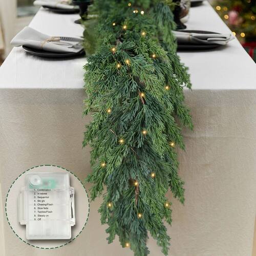 - Guirlanda de Natal pré-iluminada OZFHUA: A guirlanda de pinho de Natal pode funcionar em 8 modos. Nenhum plugue é necessário alimentado por 3 pilhas AA (pilhas não incluídas). Guirlanda reutilizável, desde que você a guarde após usá-la este ano, você pode continuar a usá-la no Natal seguinte o suficiente para atender às suas necessidades de decoração.